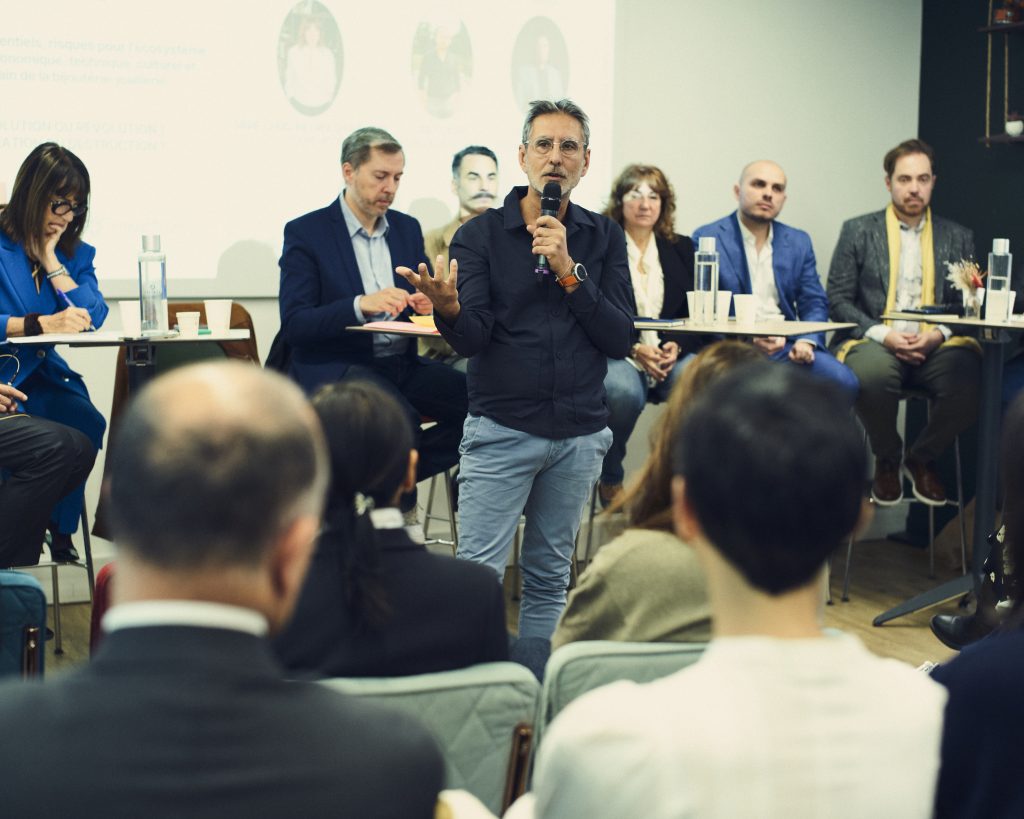 Pour la première fois, une table ronde dédiée à l’IA a réuni experts technologiques et représentants du secteur, modérée par Corentin Quideau, maître d’oeuvre de Précieuses Confluences. Les interventions de Stéphane Amarsy (The Next Mind), Emmanuel Fraysse (Digilian), Éric Dargent (Araïko – Cynapps), ainsi que celles de Marie-Christine Grocq-Parruitte (Groupe MCGP), Joey Lager (Rubel & Menashé), Frédéric Mané (expert design en joaillerie) et Bertrand Pillot (Francéclat) ont illustré la richesse des approches et la complémentarité des expertises.